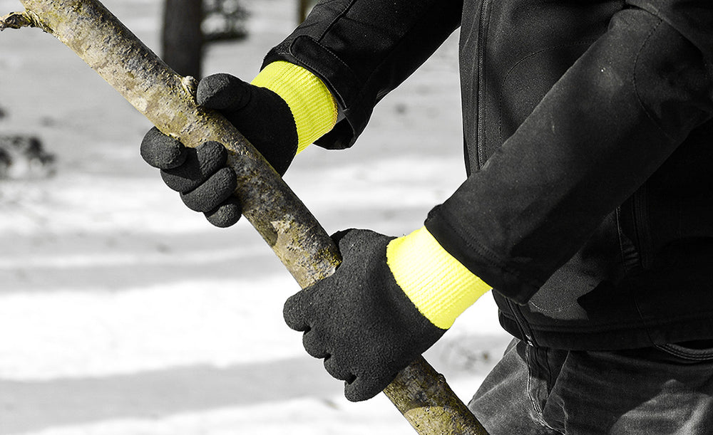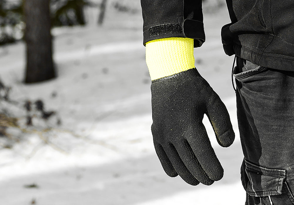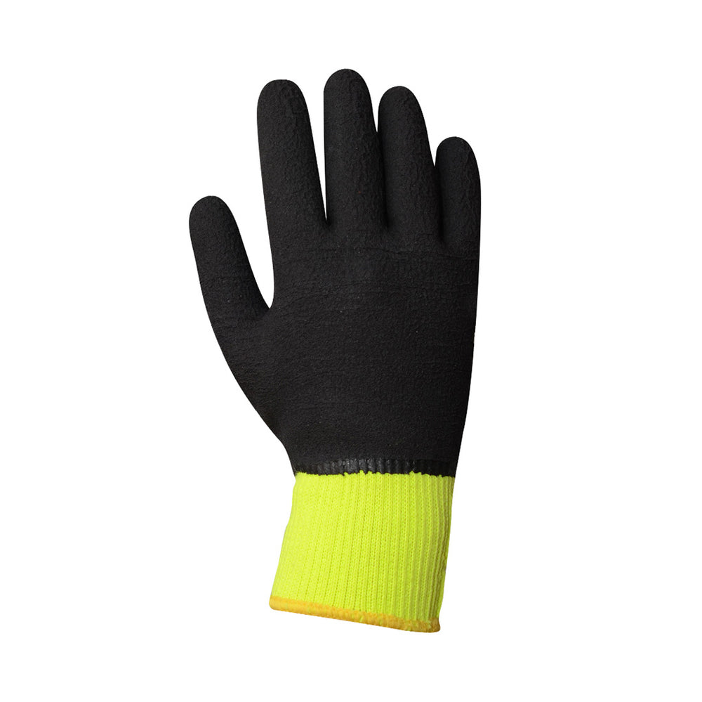 одплатени, изработени от висококачествена полиестерна прежда и флуоресцентен цвят. Пълно двустранно покритие с много издръжлив разпенен латекс. Ръкавиците имат висок комфорт по време на работа при ниски температури и на открито, сигурен захват при студени и влажни условия и висока устойчивост на разкъсване.