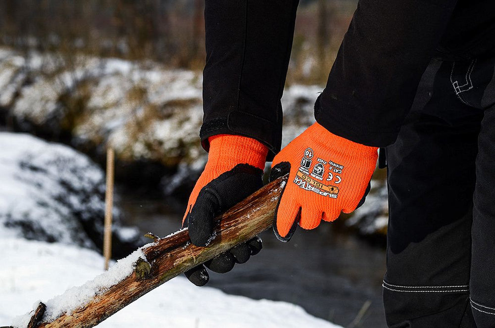 подплатени, изработени от висококачествена акрилна прежда и акрилна подплата от вътрешната страна. Дланта е покрита с много издръжлив разпенен латекс. Имат висока устойчивост на разкъсване и са подходящи за работа в студена среда.